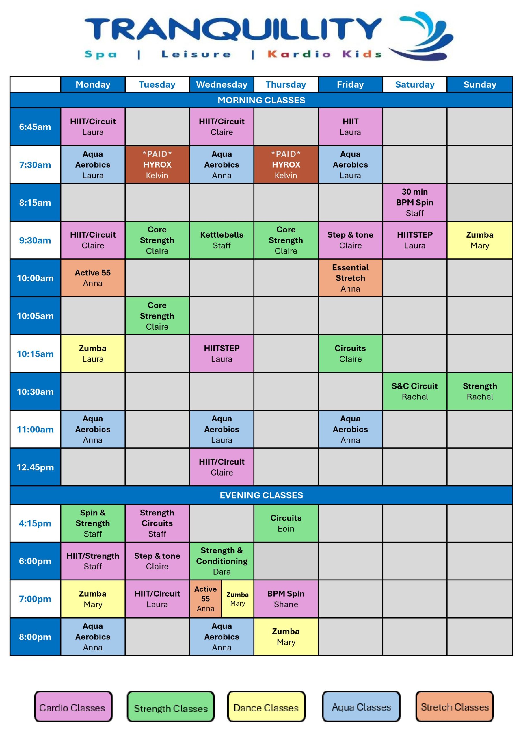 For these classes listed you do not have to book them just show up and take part. *Not including the classes marked paid*